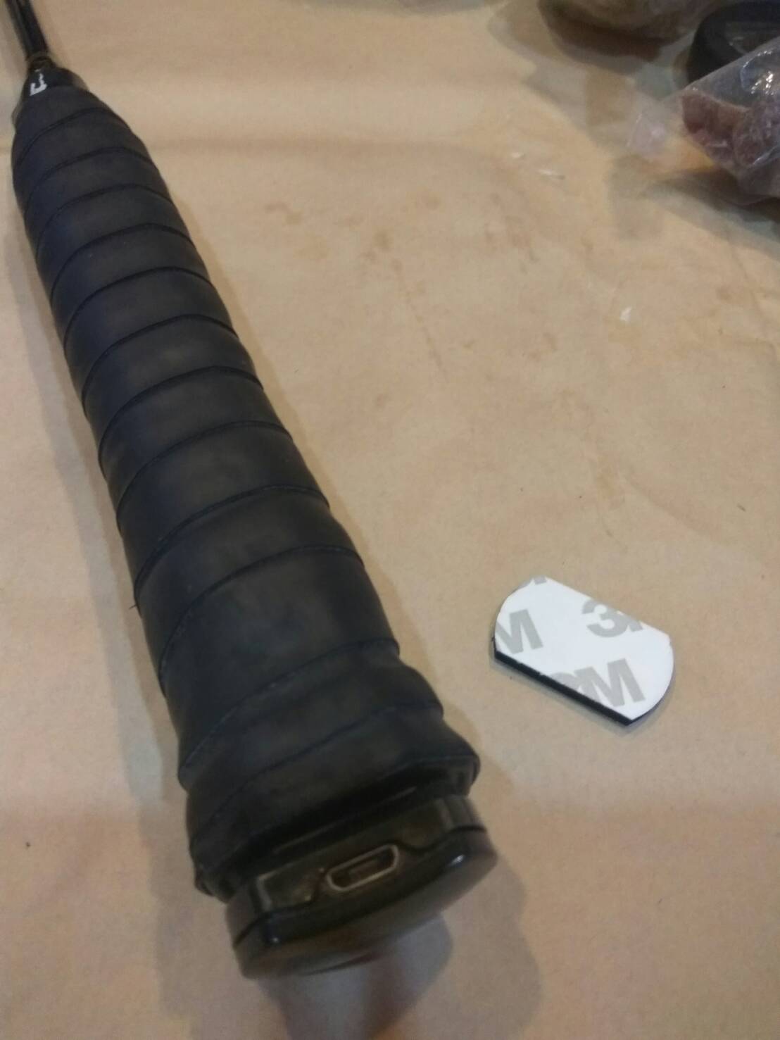 方法2:3M膠+傳感器 優點:跟裝矽膠套相較之下少了一倍重量 缺點:掉拍時傳感器直接接觸地面,每次換拍就得換3M膠 ,除膠也是一個困擾